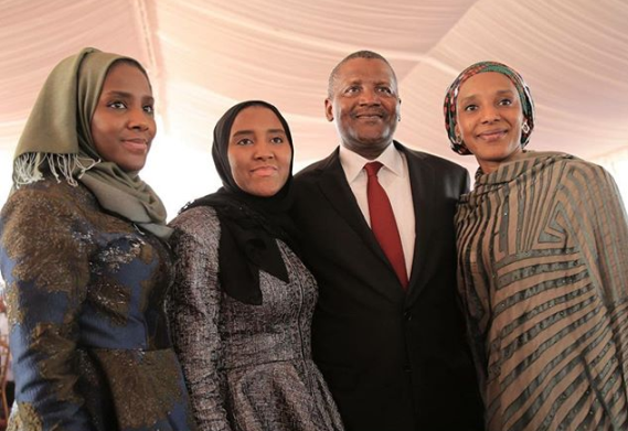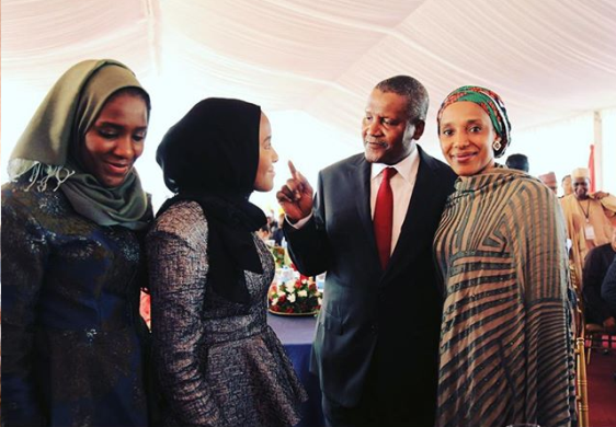 At the opening ceremony Aliko Dangote was accompanied by his three daughters Halima, Fatima and Sadia.