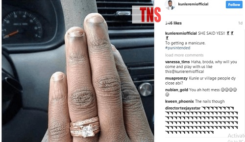 What’s interesting to note is, while Adesua’s colleagues congratulated her two days ago, Kunle Remi was silent.