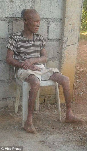 He used to enjoy visiting the local market and church but now spends his days hidden in a wooden home after residents started to believe he was an evil spirit and not actually human.