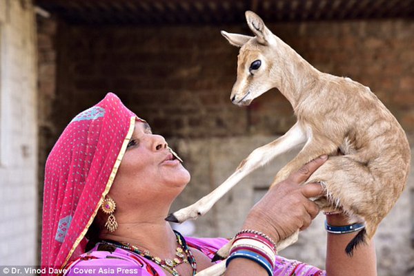 ‘These baby deers are my life and they’re like my own children,’ said Mangi Devi Bishnoi, 45, a housewife from one of the villages.‘I feed them milk and food and ensure they’re given proper care and attention in the house like all my family members.