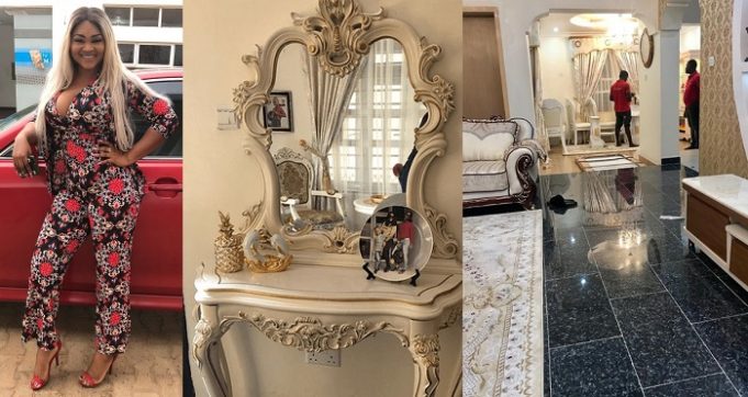 Nollywood Actress, Mercy Aigbe and mother of two, who is now a proud owner of a mansion in Magodo area in Lagos, has just posted photos of her eye popping living room and captioned it:
