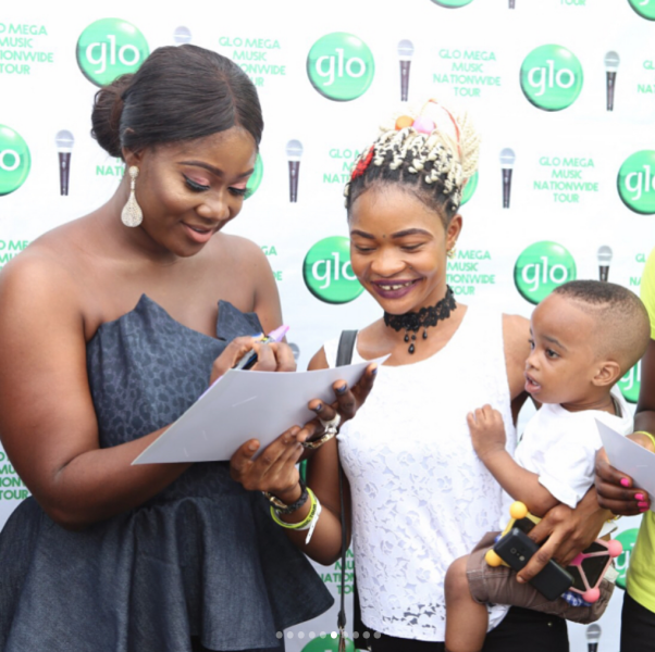 Nigerian actress and Glo Ambassador, Mercy Johnson helped a little boy abandoned by his mother at GLO Mega Music Tour, Ajah, Lagos.