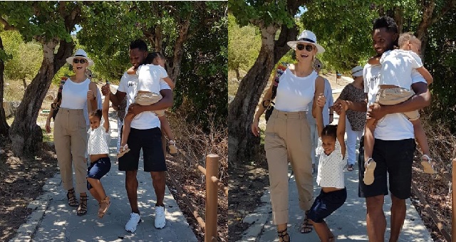 Retired Super Eagles captain, Mikel Obi took to his Instagram page to share these beautiful family photos of himself enjoying a stroll with his partner, Olga Diyachenko and their adorable twin daughters, Ava and Mia.