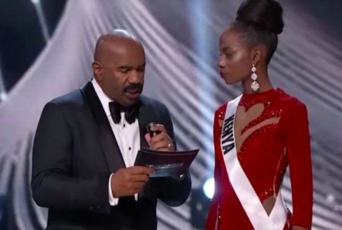 The question was directed at her by Celebrity TV show host Steve Harvey, during the pageant held in Manila, Philippines.