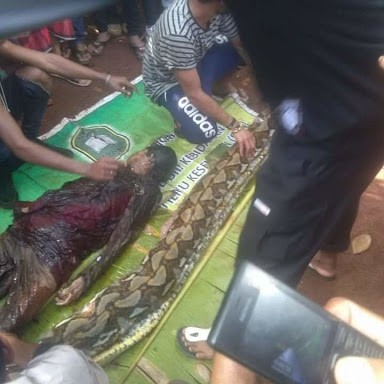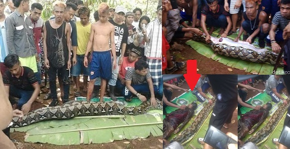 “The villagers who were suspicious brought the python back to the village and cut it open. She was found dead inside the snake with the body intact,” local police chief Agus Ramos said.