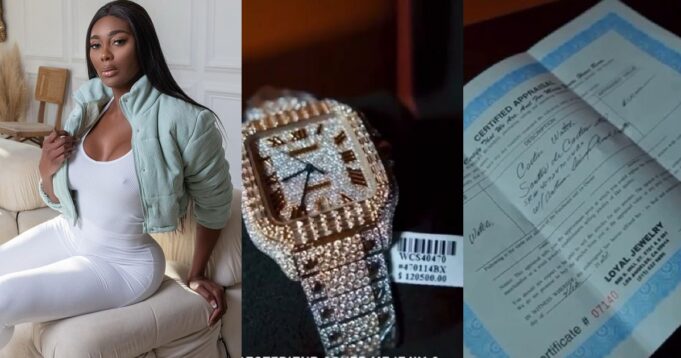 Faith Morey, a US-based Nigerian supermodel, has splurged on a new Cartier diamond wristwatch.