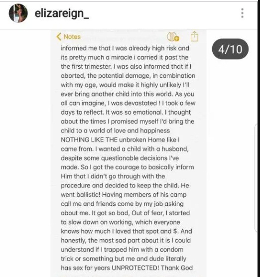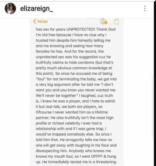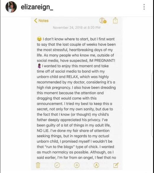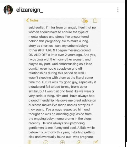 The model named Eliza Reign revealed this in a lengthy Instagram post, and claimed she had an on and off affair with Future for 2-years and in the process got pregnant for him.