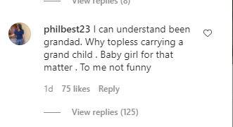 Another critic, Phil Best wrote, “I can understand been grandad. Why topless carrying a grand child. Baby girl for that matter. To me not funny”.