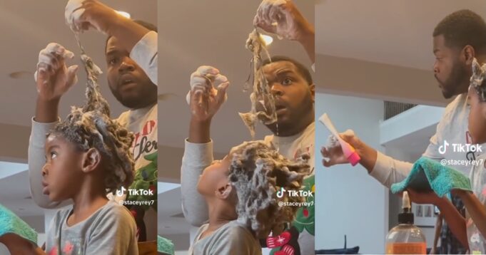 A shocking incident was posted on Tiktok by @Staceyrey7, it happened when a father used a hair removal cream to wash his daughter’s hair.