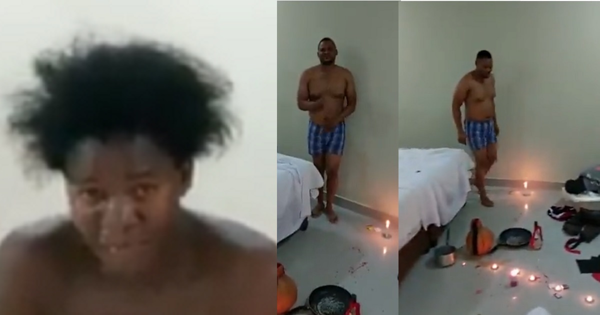 The man who is said to be her pastor, can be seen frantically putting on his underwear in a bid to conceal his nakedness.