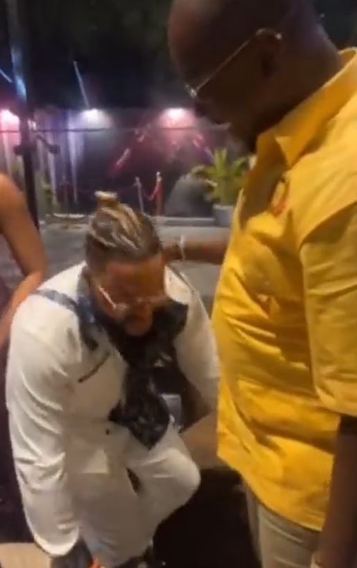 An ecstatic Whitemoney is seen kneeling before the businessman who he says is his role model – greeting him, WM sorts of worship the businessman as he plants kisses, using his hands, on the billionaire’s feet while embracing him.