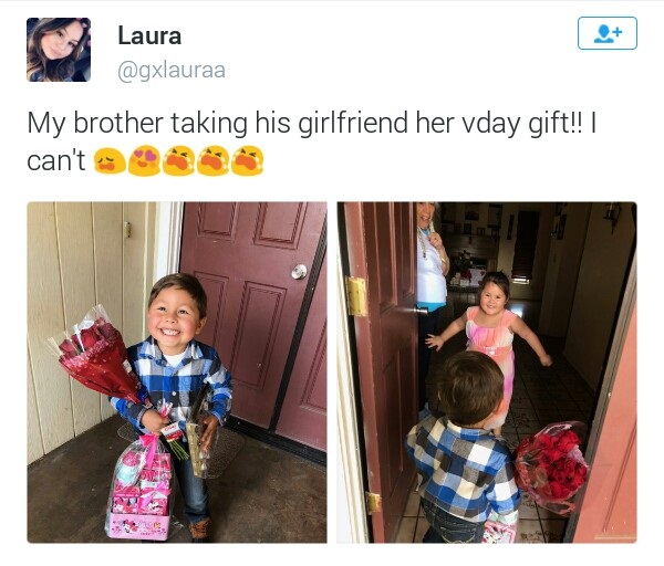 His sister posted the photos on Twitter and wrote; “My brother taking his girlfriend her vday gift!! I can’t”