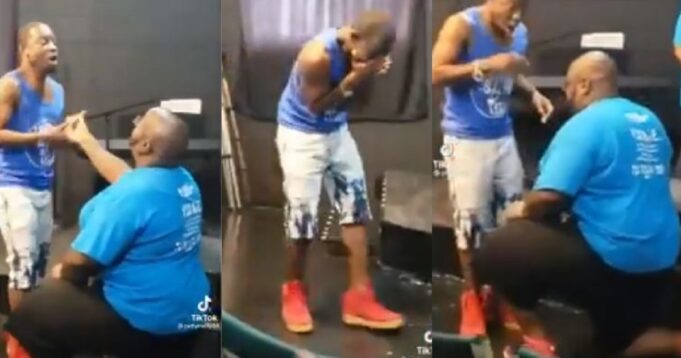 It was a moment of joy for a young man identified as @pettymelly84, as his gay lover knelt down to propose to him.