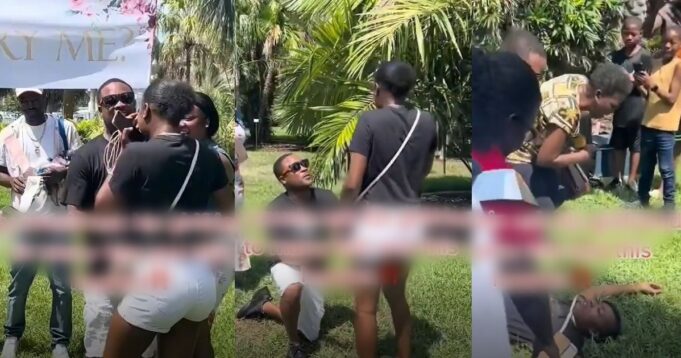 A video serving the rounds has captured the terrifying moment a young lady collapsed during her boyfriend’s romantic proposal to her.