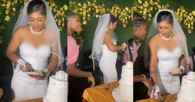 Revealing in the video, the bride was recorded dividing a piece of cake in the middle of a conversation.