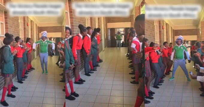 Hilarious reactions have trailed a clip of a Nigerian teacher doing a victory parade in a school in South Africa.