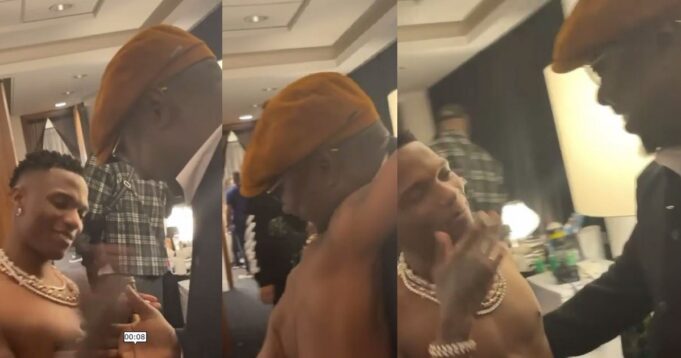 “Ahhh, Obi! You said you were going to come and you made it. I really appreciate that. You’re looking sharp…” Wizkid told Obi Cubana.