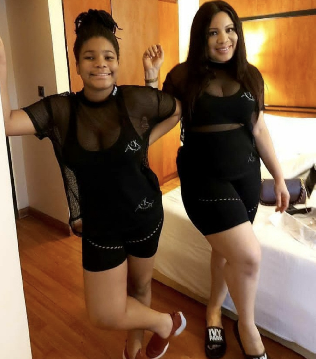 Monalisa and her 12-year-old daughter are pretty much the same height now as they both donned black biker short and mesh top.