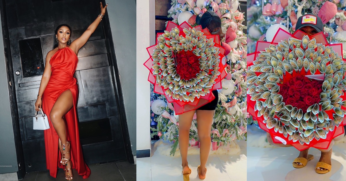 Nigerian socialite and former reality TV star, Mercy Eke has seemingly been humbled by love after she was gifted a money bouquet from her latest beau.