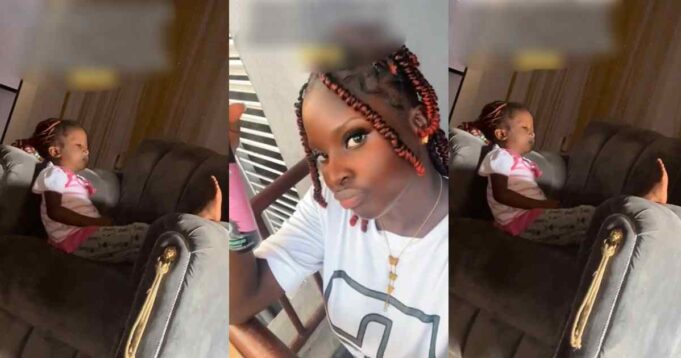 The girl was shown in the widely shared video unwinding on their one-seat cushion chair and considering what she had done.
