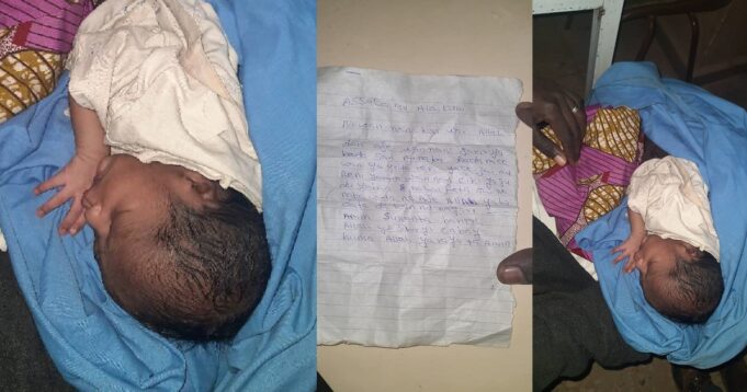 A mother dumped her newborn baby along a road in Daura town, Katsina state with a handwritten note explaining the reason she took the drastic action.