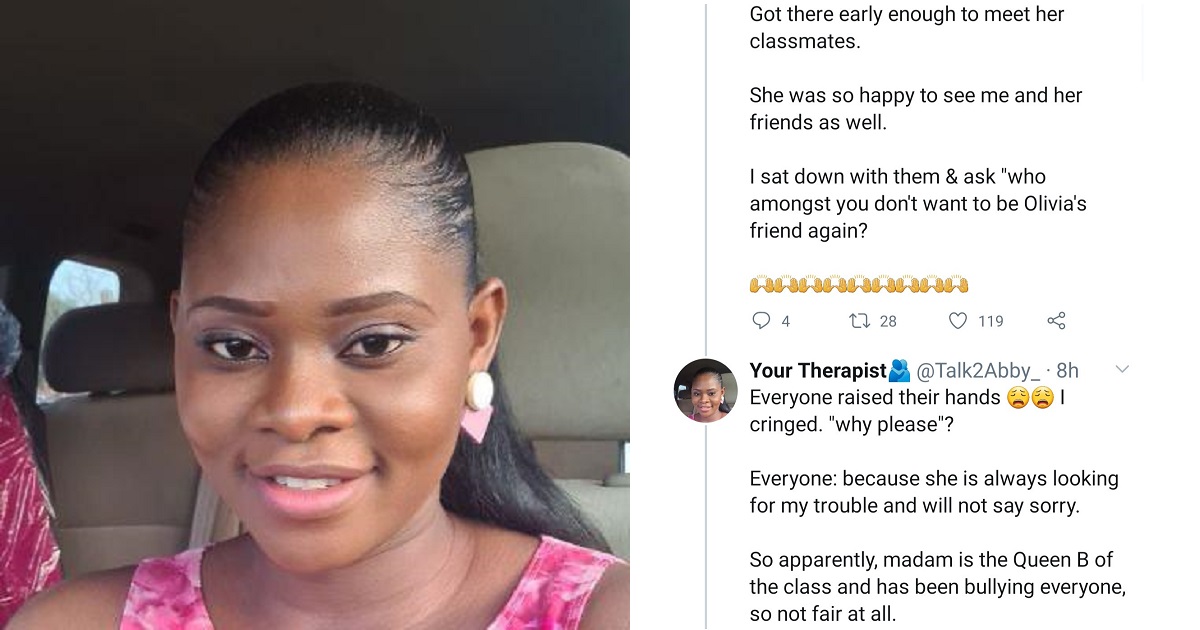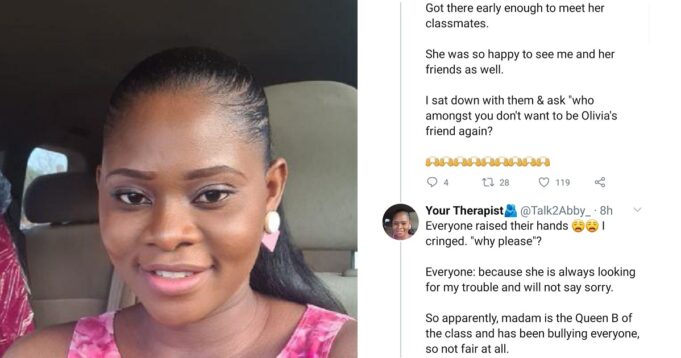 A Nigerian mum has narrated how she discovered her daughter was giving her classmates trouble and how she handled the situation.