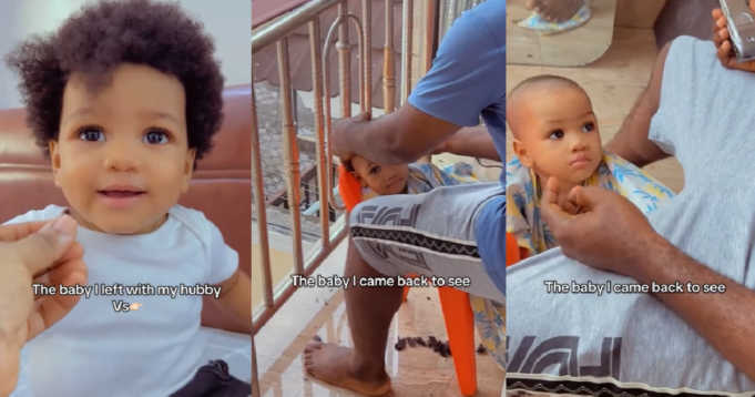In a short video she shared on Instagram, the lady showed the before and after of her little boy’s haircut.