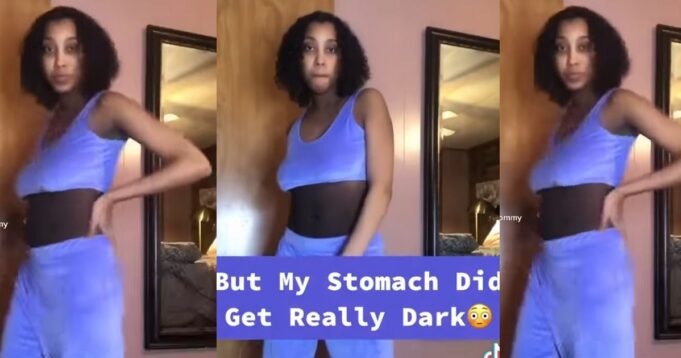However, the tummy of the new mum who is light-skinned went from it’s fair complexion to being extremely dark.