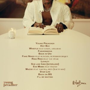 Tracklist: Young Preacher, Hot Boy, Whistle, Fashionnova, Back In Uni, Fake Nikes, Ring Ring, Loyalty, She Like Igbo, Ess Mama, Mazoe, Star Life, Back On BS, I’d Be Waiting.
