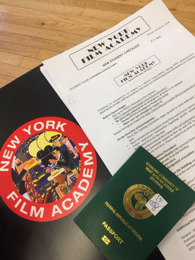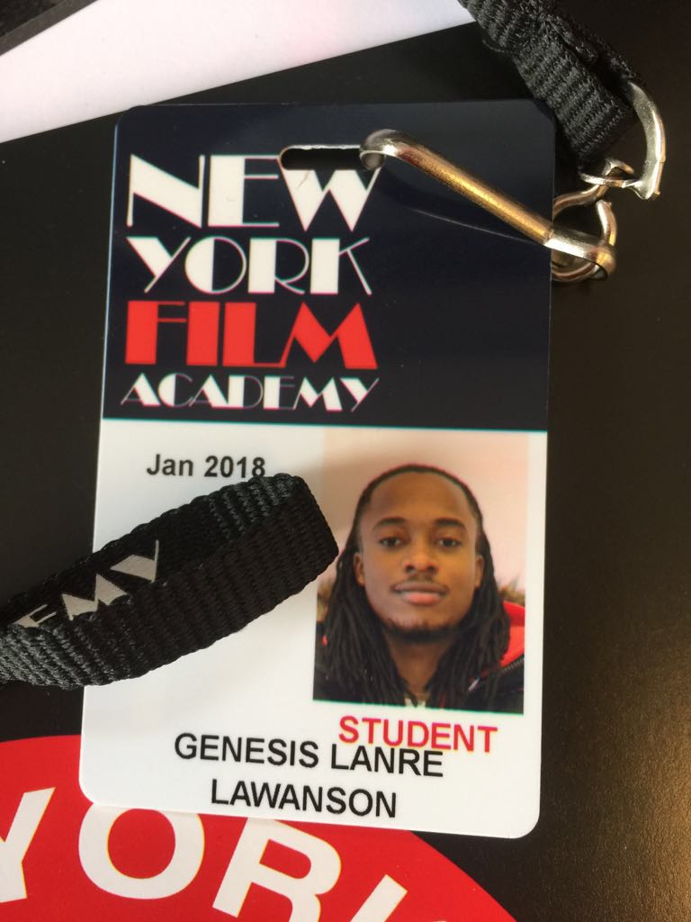Below are videos and photos of Genesis Lanre Lawanson with his ID card in New York Film Academy.