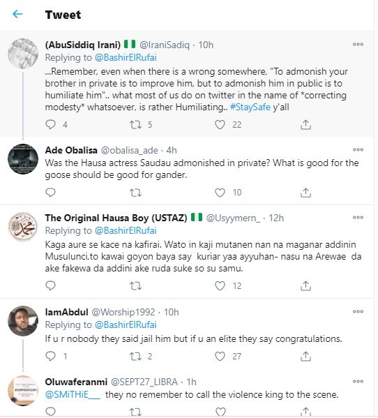 Another user condemned those who called out Nigerian actress, Rahama Sadau over her low-back dress but are congratulating the new couple. He wrote,
