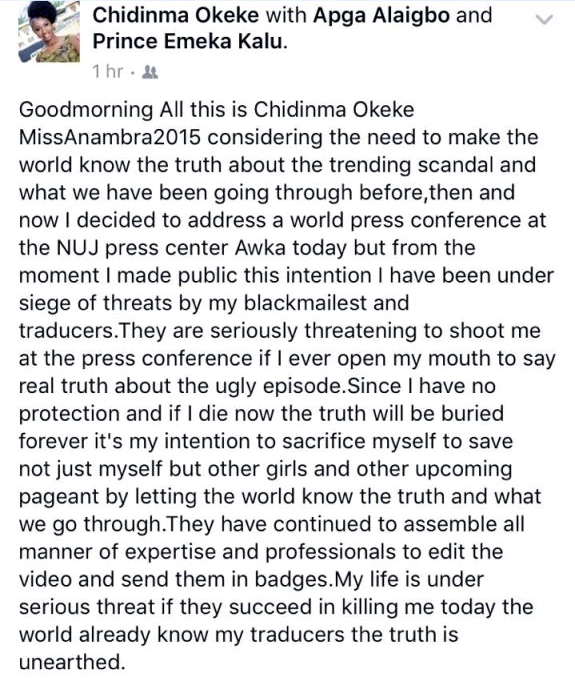 U guys should know that chidinma is de most popular girl now in anambara state so many people out there ar trying to bring her down pls she is innocent guys ,I have a question for u guys, were is the lady that post the vedio ? Be wise Nigerians