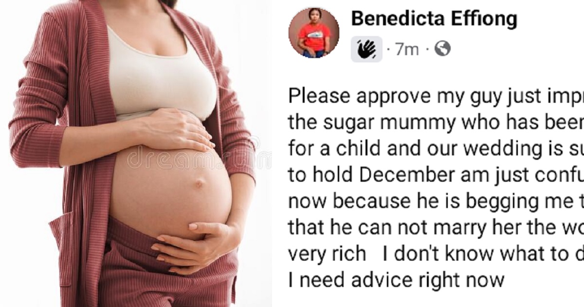 “Please approve my guy just impregnate the sugar mummy who has been looking for a child and our wedding is supposed to hold December am just confused right now because he is begging me telling me that he can not marry her the woman is very rich I don’t know what to do please I need advice right now” she wrote.