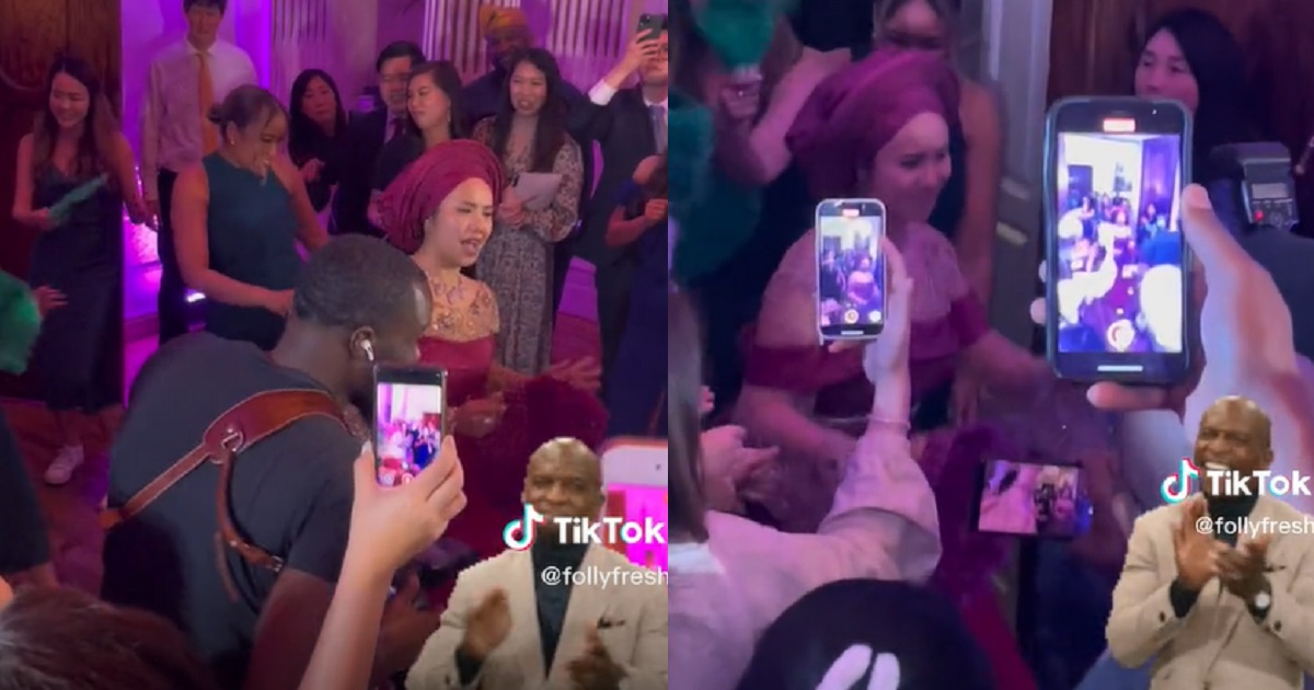 A newlywed Nigerian man has shared a beautiful video of his Chinese wife rocking a Yoruba traditional attire and dancing traditionally at their wedding.
