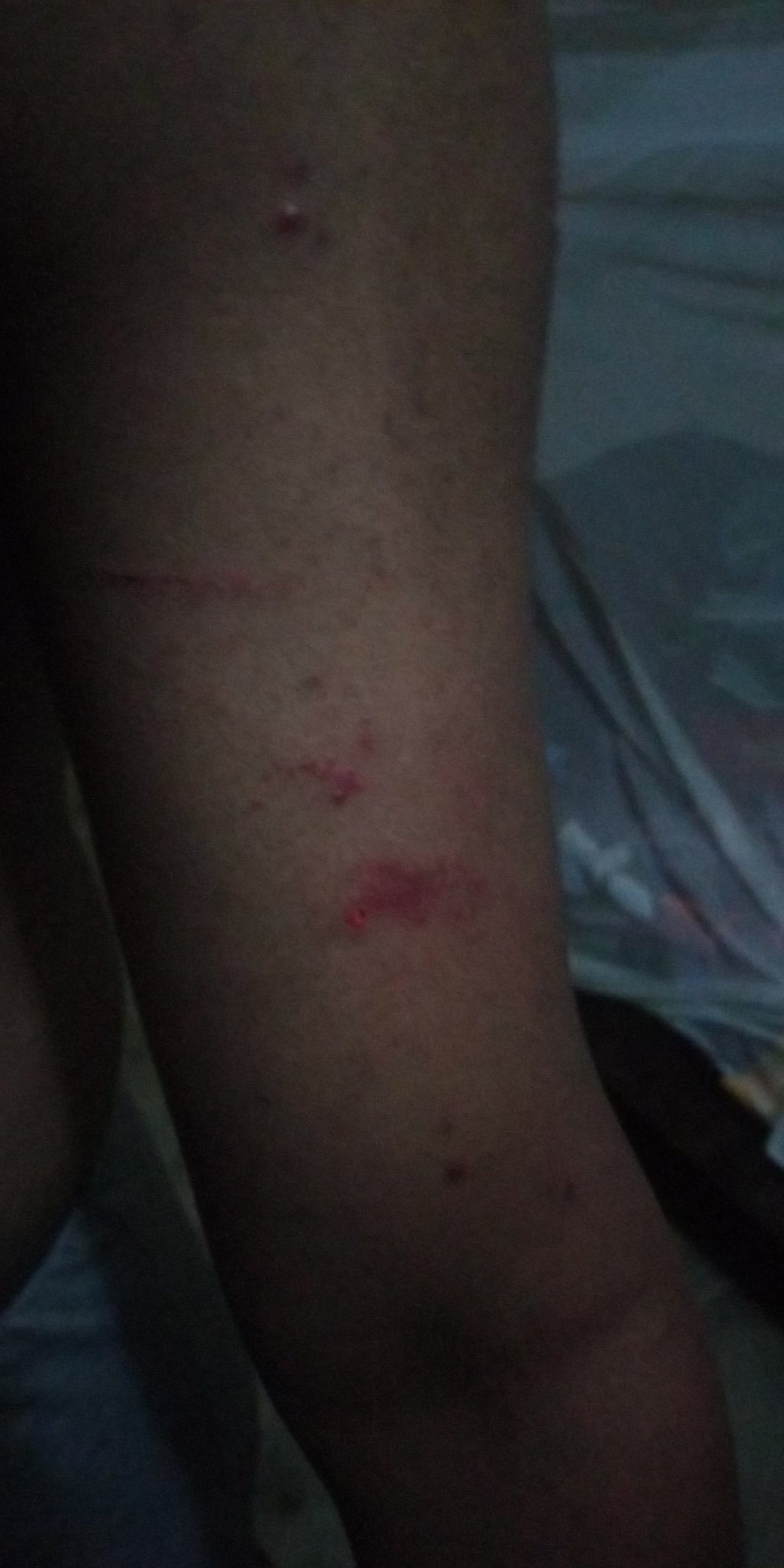 Taking to Twitter, Ayo shared photos of his bruised body and wrote;