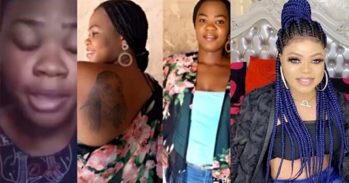 A lady who drew a tattoo of Bobrisky’s face on her back has cried out for help after allegedly being disowned by her father.