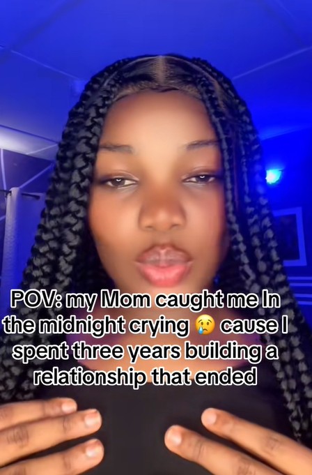 In the clip, the lady @benita0684 noted that her mum caught her crying at midnight at 2 am, because her partner ended their 3-year-old relationship to date another woman.