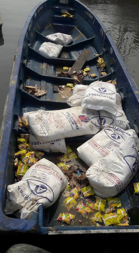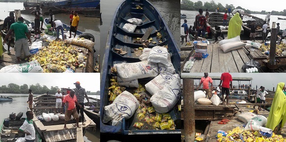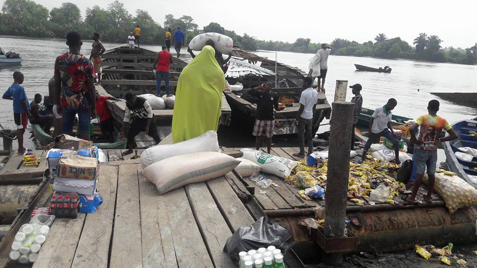 Earlier today, a boat carrying goods worth over 5 million from Cotonou in Benin Republic capsized at the Bonny Jetty in Rivers state. Report has it that the boat arrived Bonny Jetty at about 6pm yesterday, the manager of the Cotonou boat left his duty post to a beer palour to watch football match between Arsenal and Chelsea – leaving the goods inside with no order to unload the boat.