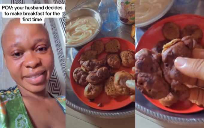 In a video shared on TikTok, the lady who identifies as @mummytrevor shared the outcome of the breakfast, her husband prepared for the first time. Apparently, her husband decided to prepare pap and Akara (bean cake) for breakfast.