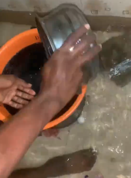 A lady experienced significant food loss due to her sibling’s carelessness in locking the kitchen tap, they had left it running resulting in a pool of water.