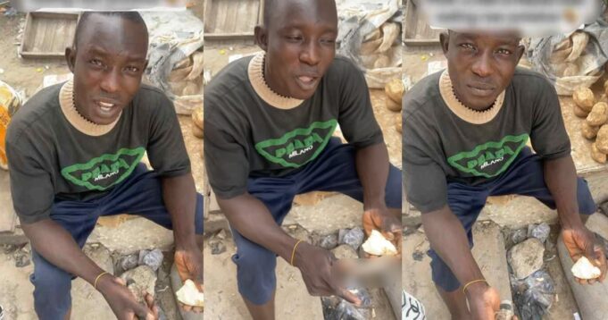 A Nigerian lady has stirred reactions online as she queries a potato vendor for consuming raw sweet potatoes at the market.