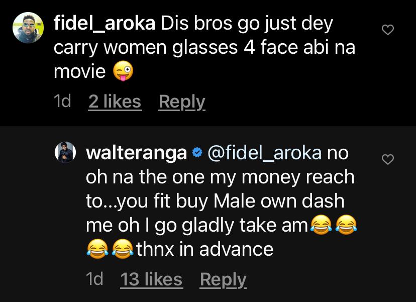 Nollywood Actor, Walter Anga was recently dragged into an exchange with a fan who seemingly questioned his fashion sense.