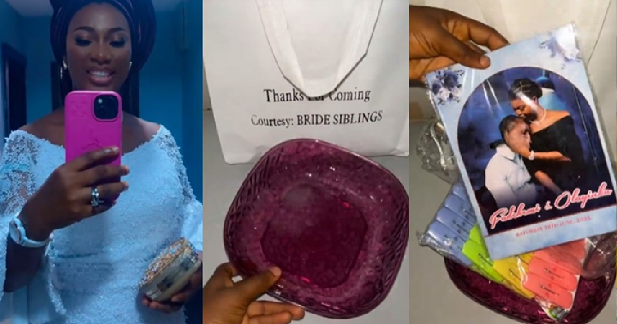 Lady shares delightful and practical souvenirs she received at a wedding party, sparking admiration and conversation online.
