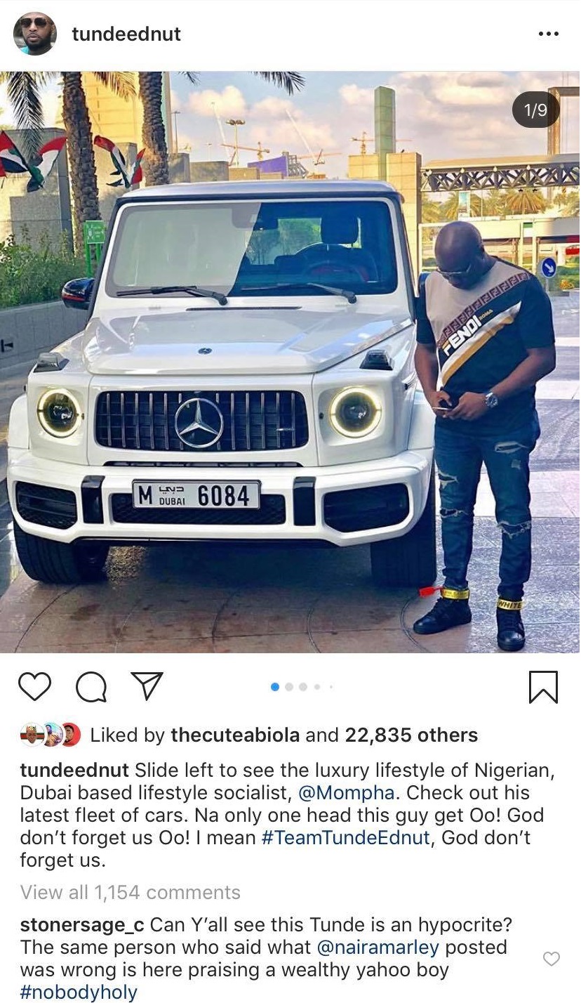 Naira Marley has now accused Tunde Ednut of taking money from yahoo boys for his giveaways. “@tundeednut u collect money from yahoo boy to do give away. U collect money from them to post. Ur now telling me what’s wrong.”