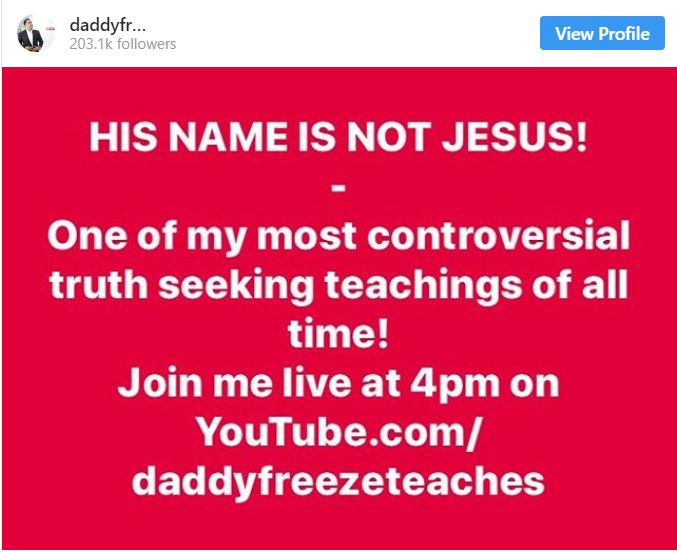 Controversial Nigerian On Air Personality and online preacher, Daddy Freeze has said that 99% of what our Pastors and GOs taught us is false, as he reveals yet another controversy in his teachings.