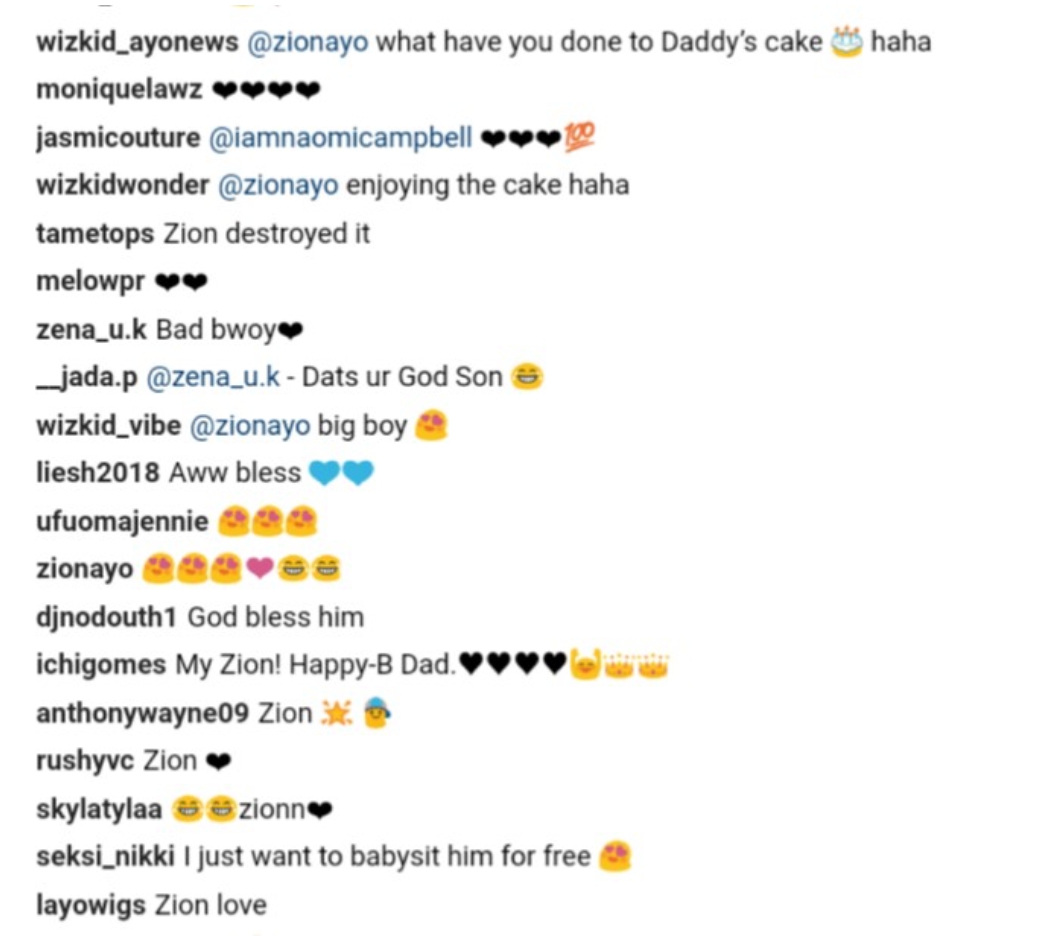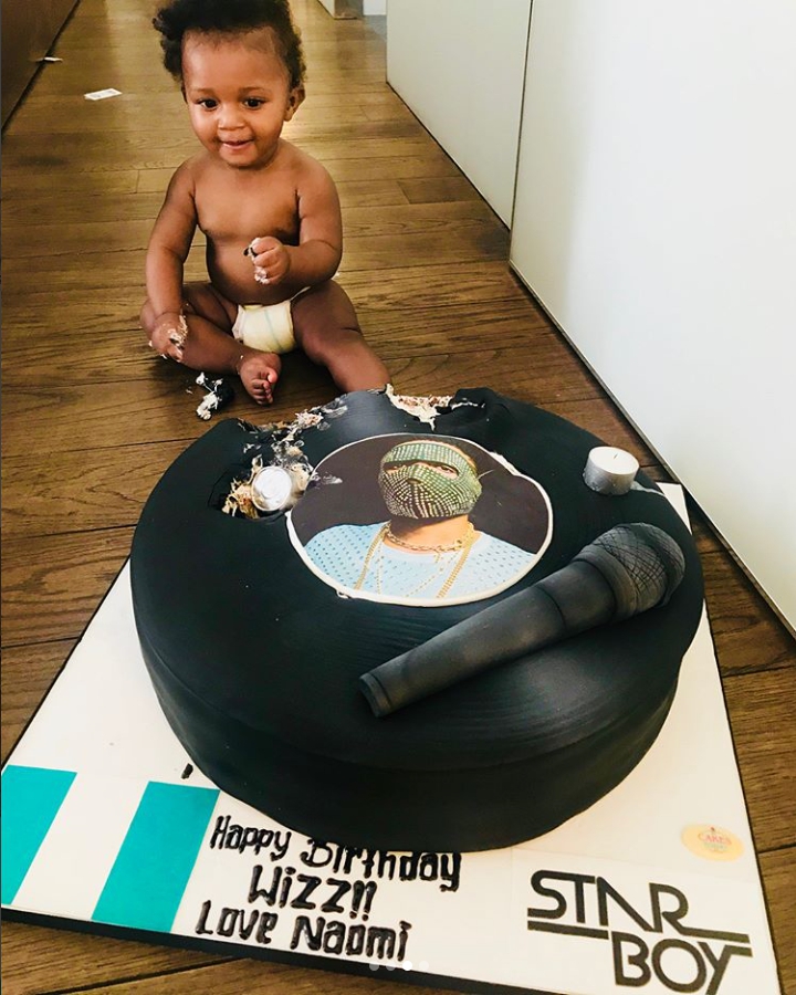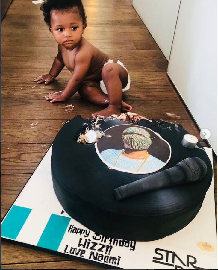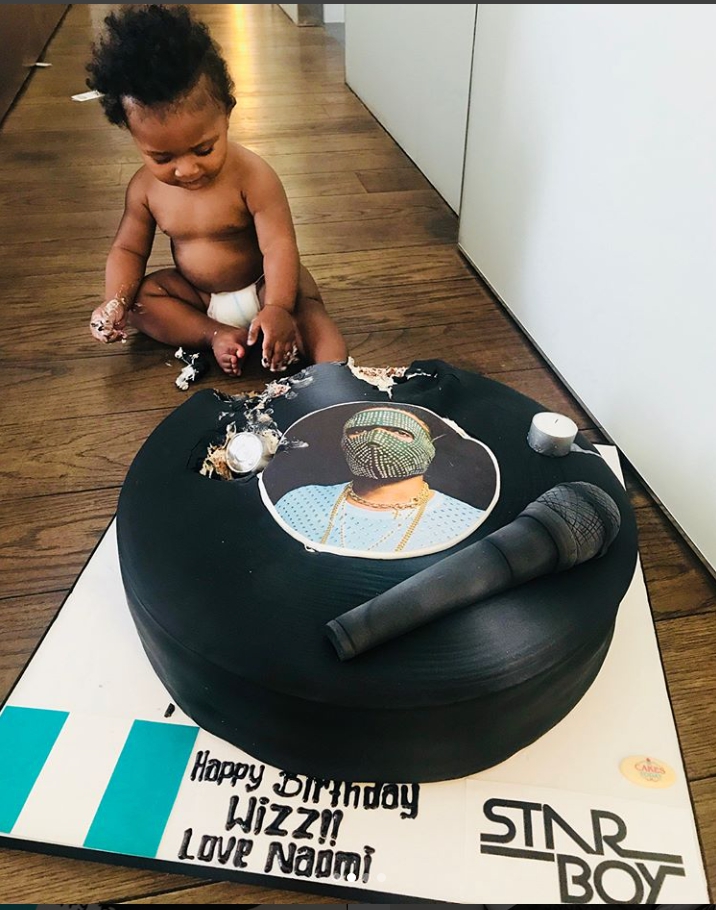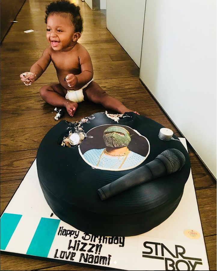 British super model Naomi Campbell presented Wizkid with a cake on his birthday, and his 3rd son, Zion has destroyed it.