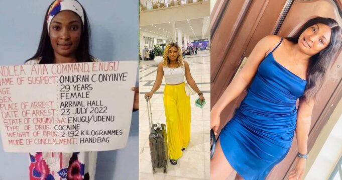 Spokesperson of the NDLEA, Femi Babafemi, in a statement on Sunday, July 24, said she was nabbed with 2.192 kilos of cocaine found hidden in two designer’s women handbags with false linings.