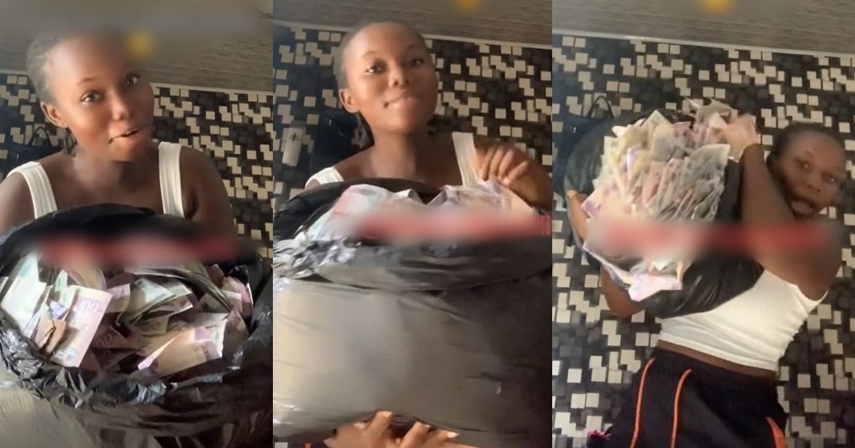 A Nigerian Lady has shared a video showcasing a substantial pile of cash she claims to have collected at a local club.