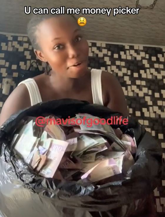 The video, posted on the TikTok account @mavisofgoodlife, shows the woman, flaunting the sizable sum of money she was able to gather during a night out at a popular club in Bayelsa state.