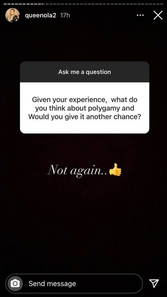 According to her, she would never consider a polygamous marriage again because of her experience in her marriage with the Oyo monarch.